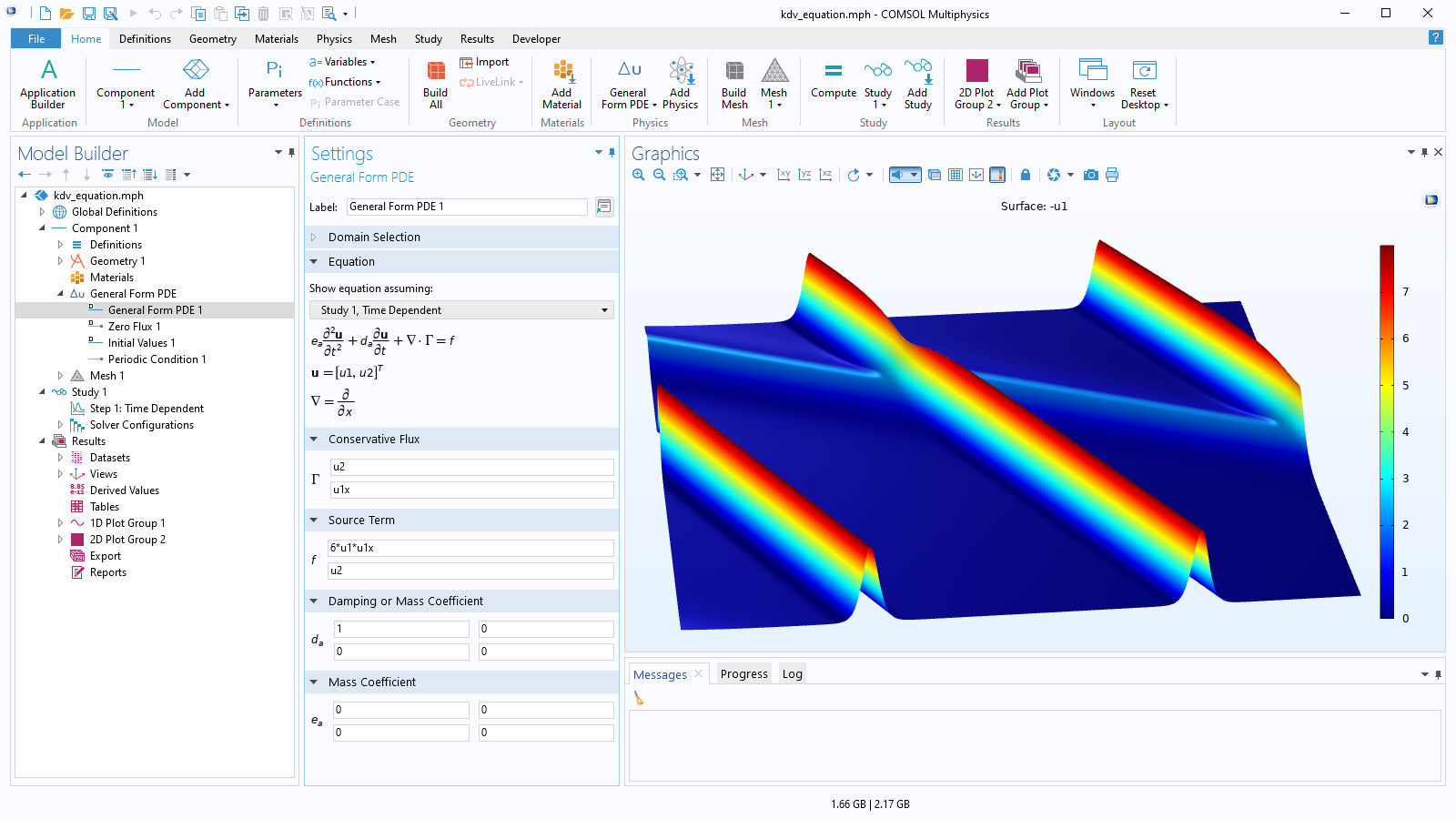 COMSOL Multiphysics® 소프트웨어의 수식 작성기는 수치 엔진에 최상의 연료를 공급합니다. 즉, 정상상태, 시간-종속, 주파수-도메인 및 고유 진동 해석을 위한 PDEs의 완전 결합 시스템입니다. PDEs 시스템은 공간 변수(x, y, z)에 대해 유한 요소법(FEM)을 사용하여 이산화됩니다. 일부 문제 유형의 경우에 대해서는 경계 요소법(BEM)을 사용하여 공간을 이산화할 수 있습니다. 공간- 및 시간-종속 문제의 경우, FEM(또는 BEM)을 사용하여 공간을 이산화 처리하여 상미분방정식(ODEs) 시스템을 형성하는 선 방법(method of lines, MOL)이 사용됩니다. 그런 다음 이러한 ODEs는 시간 단계 처리를 위한 내연적(implicit) 및 외연적(explicit) 방법을 포함한 고급 방식을 사용하여 해결됩니다.