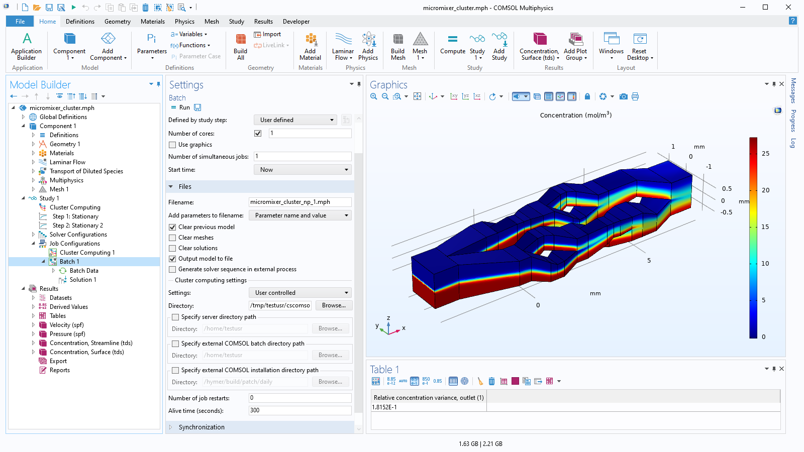 또한 서로 다른 물리 인터페이스로 구성된 문제에 대해서 최상의 기본 설정으로 제안된 솔버 설정을 제공할 수 있습니다. 이러한 설정은 고정적이지 않으며, 사용자 인터페이스의 각 솔버 노드 바로 아래에서 솔버 설정을 직접 변경하고 수동으로 구성하여 특정 문제에 대한 성능을 조정할 수 있습니다. 가능하다면 솔버 및 다른 연산 집중 알고리즘이 다중 코어 및 클러스터 컴퓨팅을 사용하기 위해서 완전히 병렬처리가 됩니다. 공유 및 분산 메모리 방법은 모두 대규모 매개변수 스윕 뿐만 아니라 직접 및 반복 솔버에서 사용할 수 있고, 솔루션 과정의 모든 단계에서 병렬 계산을 사용할 수 있습니다.
