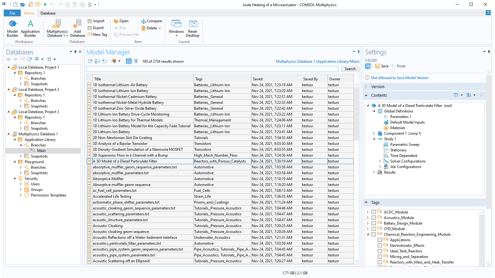 Model Manager는 COMSOL Desktop® 모델링 환경을 유지하면서 이러한 점에 초점을 맞춘 일련의 도구를 제공합니다.