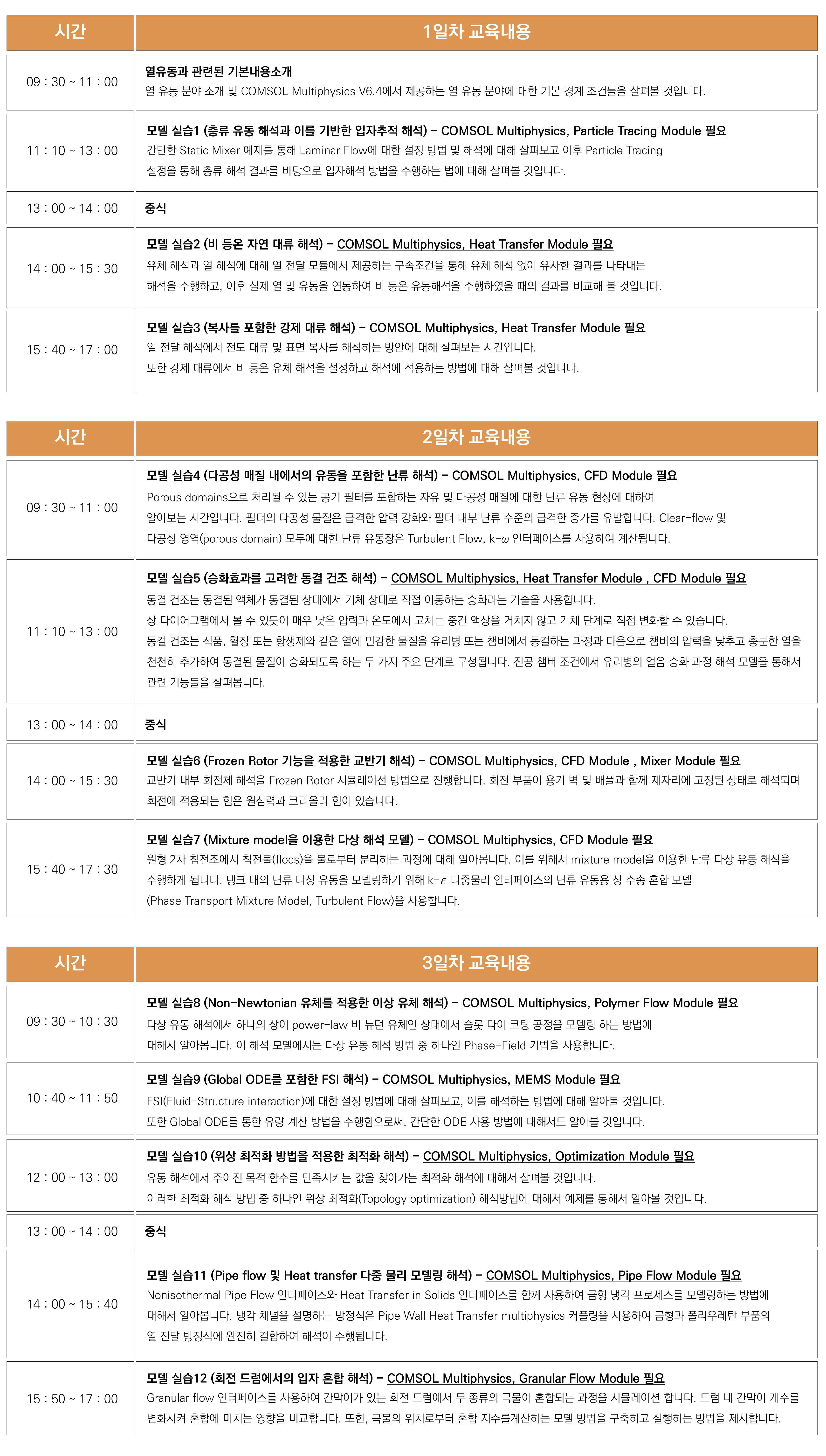 본 교육은 다중물리현상 시뮬레이션 소프트웨어인 COMSOL Multiphysics V6.4를 이용하여 3일 동안 실습 위주로 진행합니다.