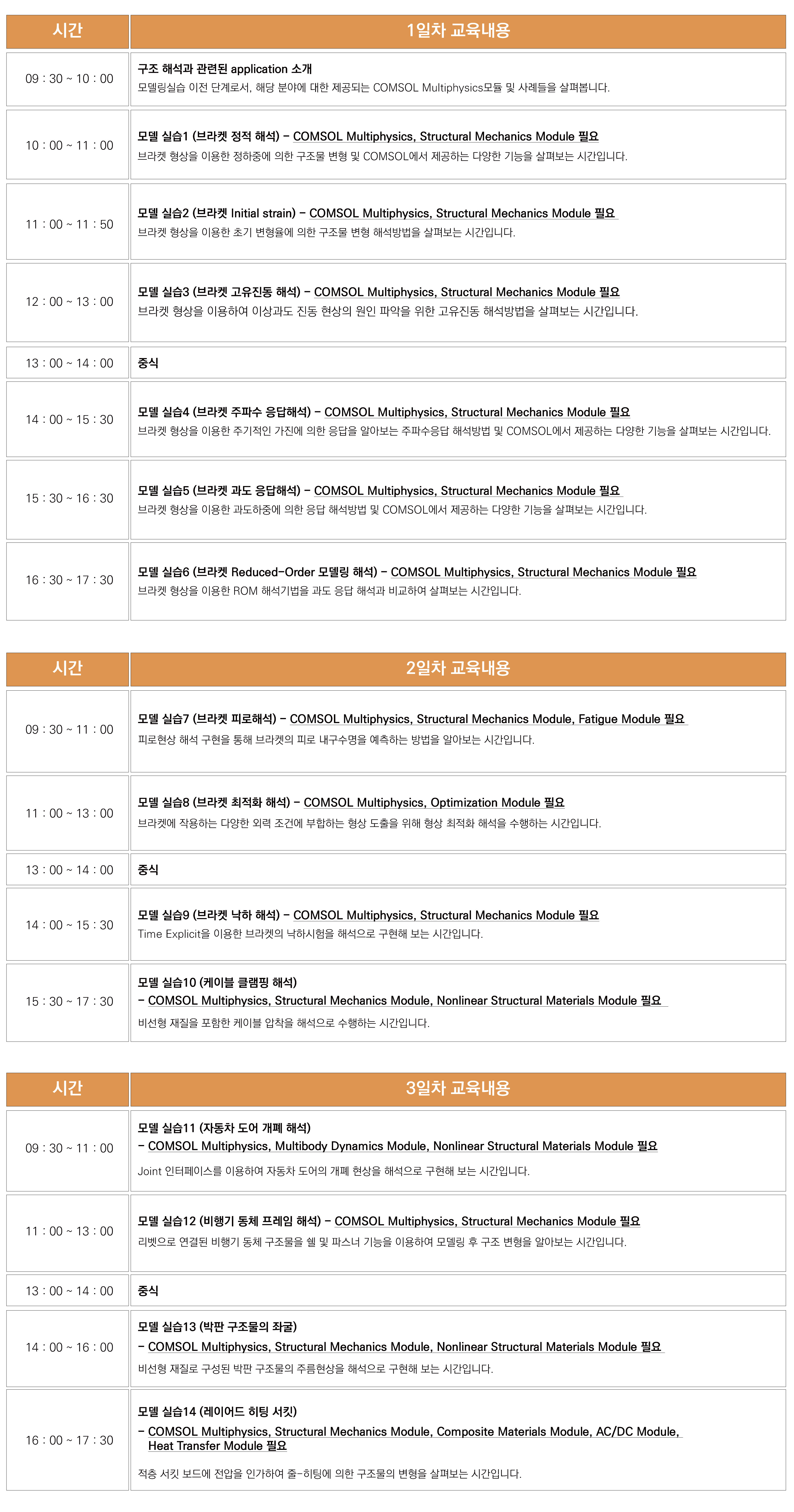 결과 가시화 및 후처리등의 시뮬레이션 전 과정을 실습하게 됩니다.