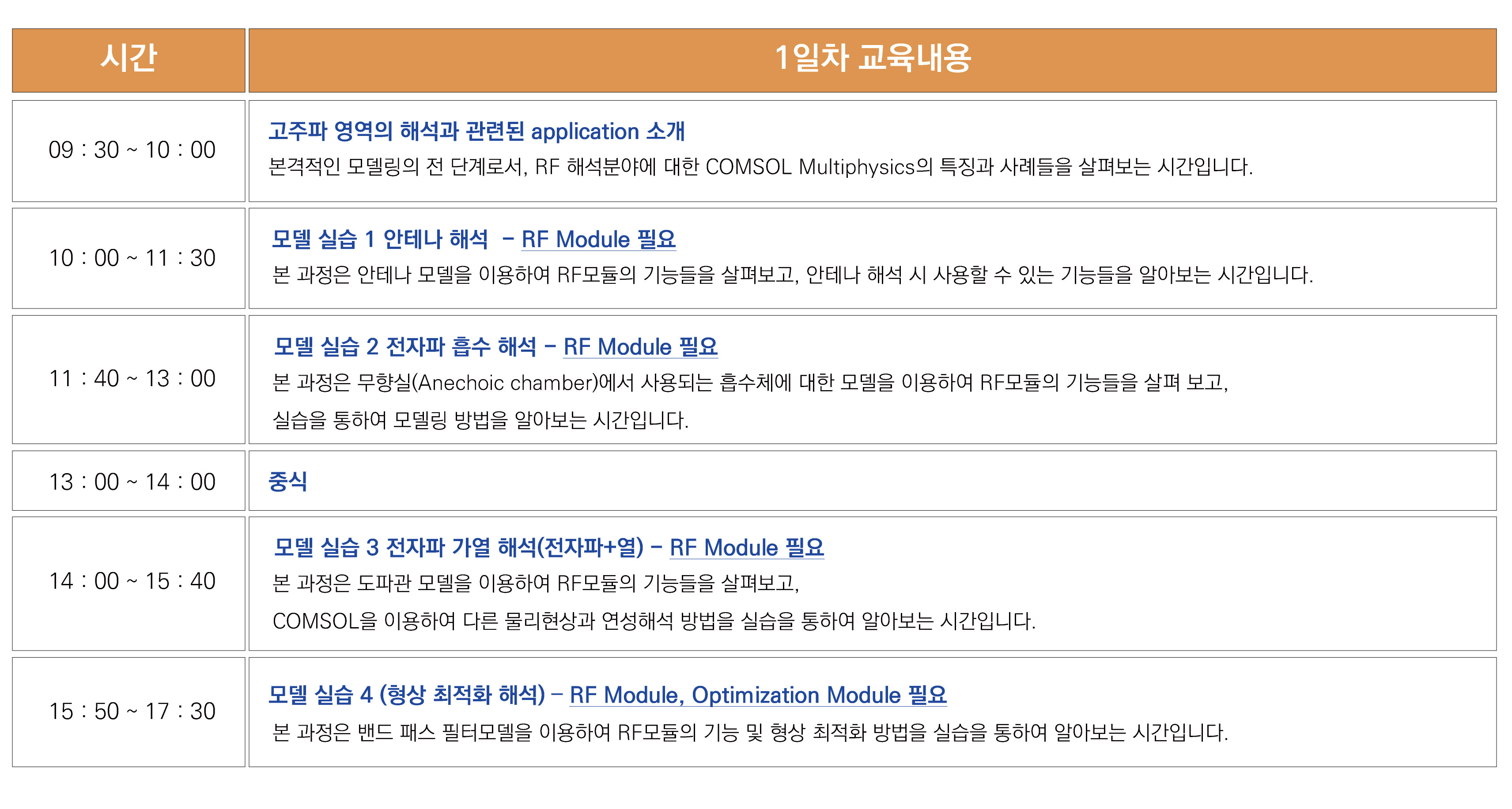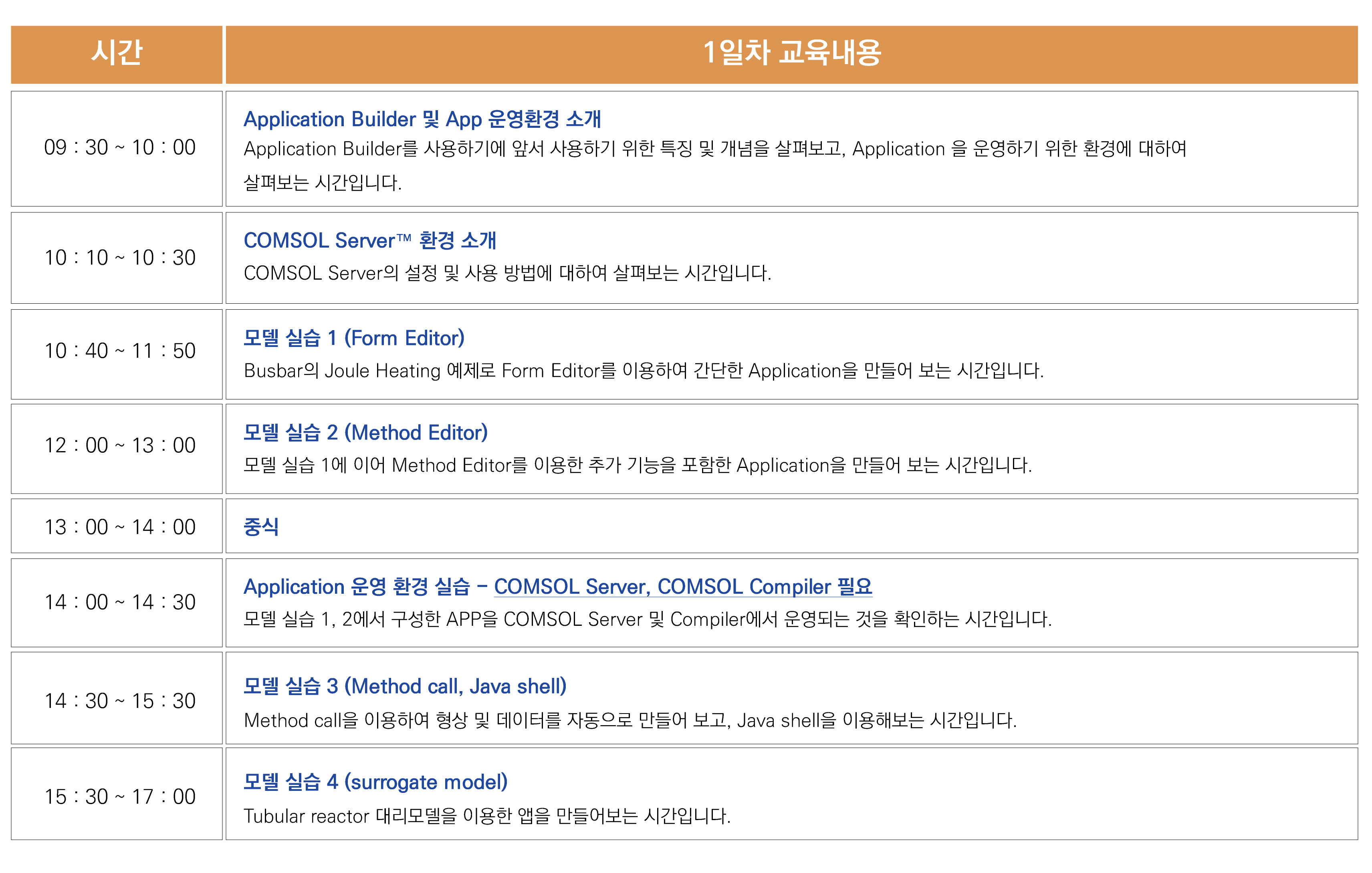 본 교육은 다중물리현상 시뮬레이션 소프트웨어인 COMSOL V6.3을 이용하여 하루 동안 실습위주로 진행합니다.