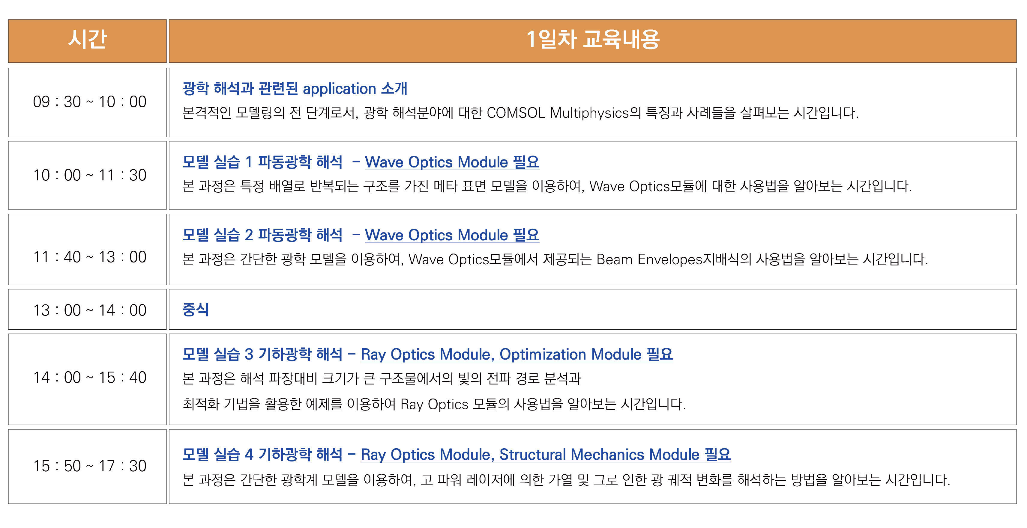 광학 분야에 관련된 모델들을 이용하여 하루 동안 실습 위주로 진행합니다.
